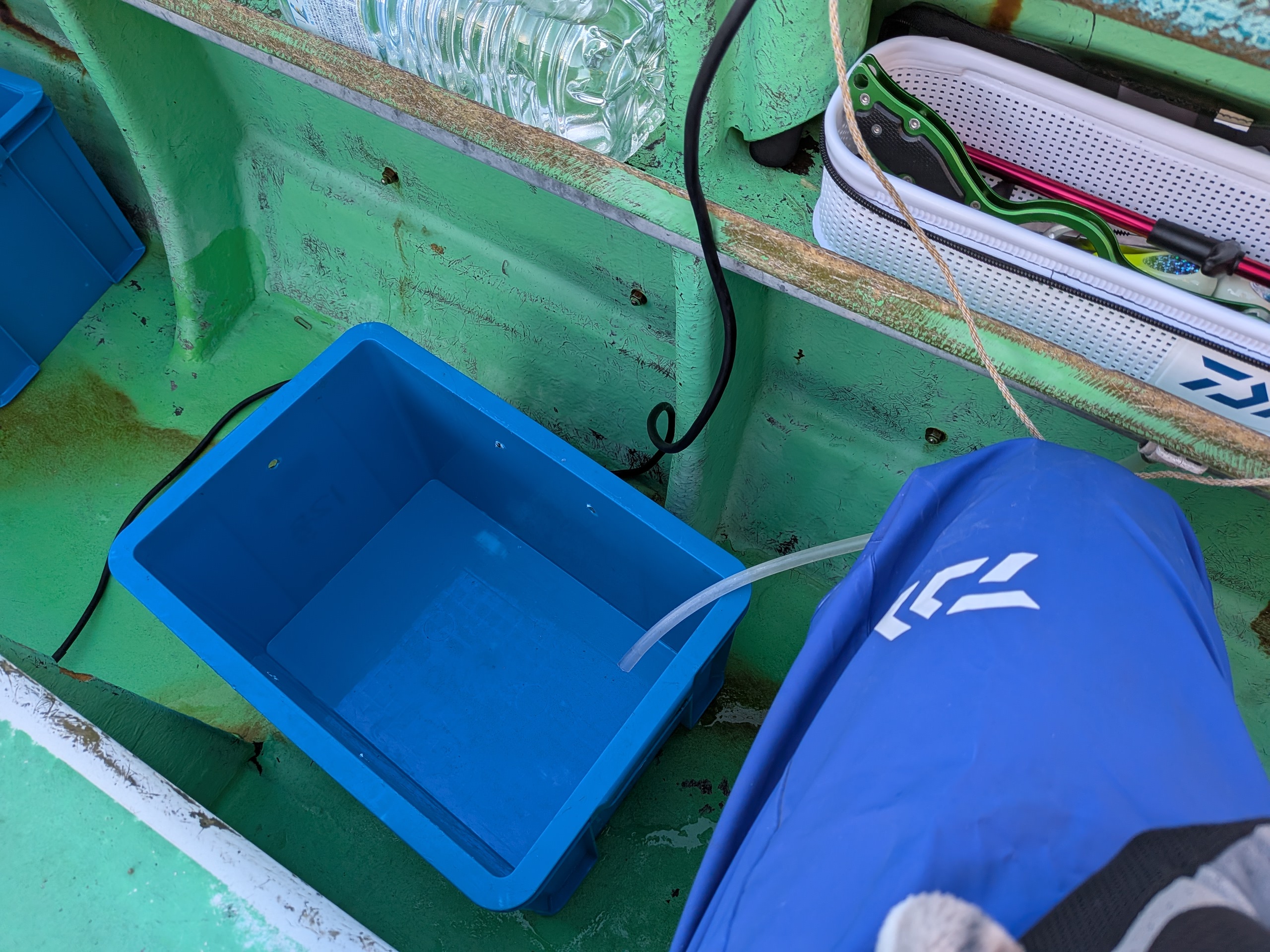 今回はレンタルタックルなので、竿は持たずにタックルボックスとクーラーのみ。