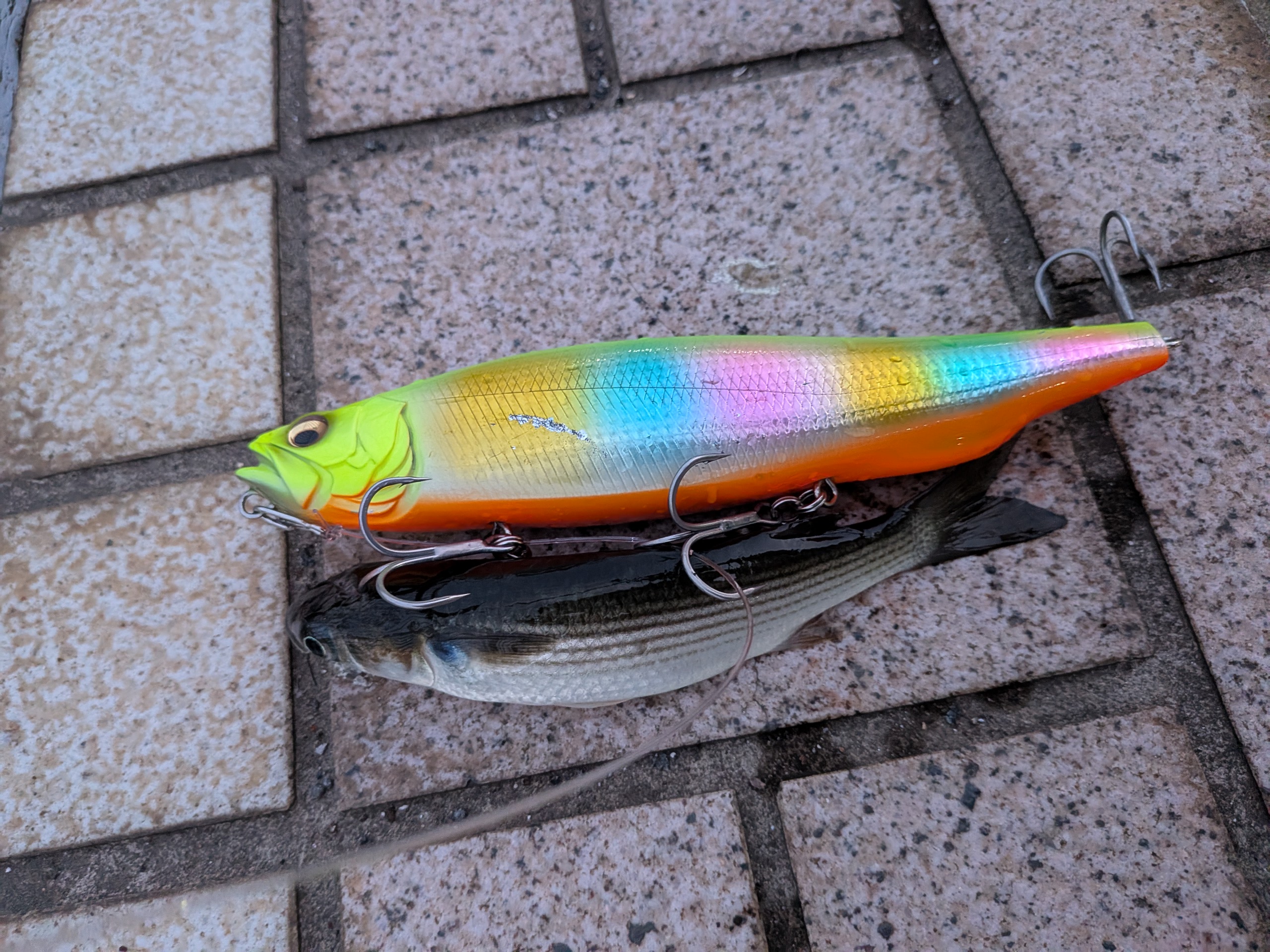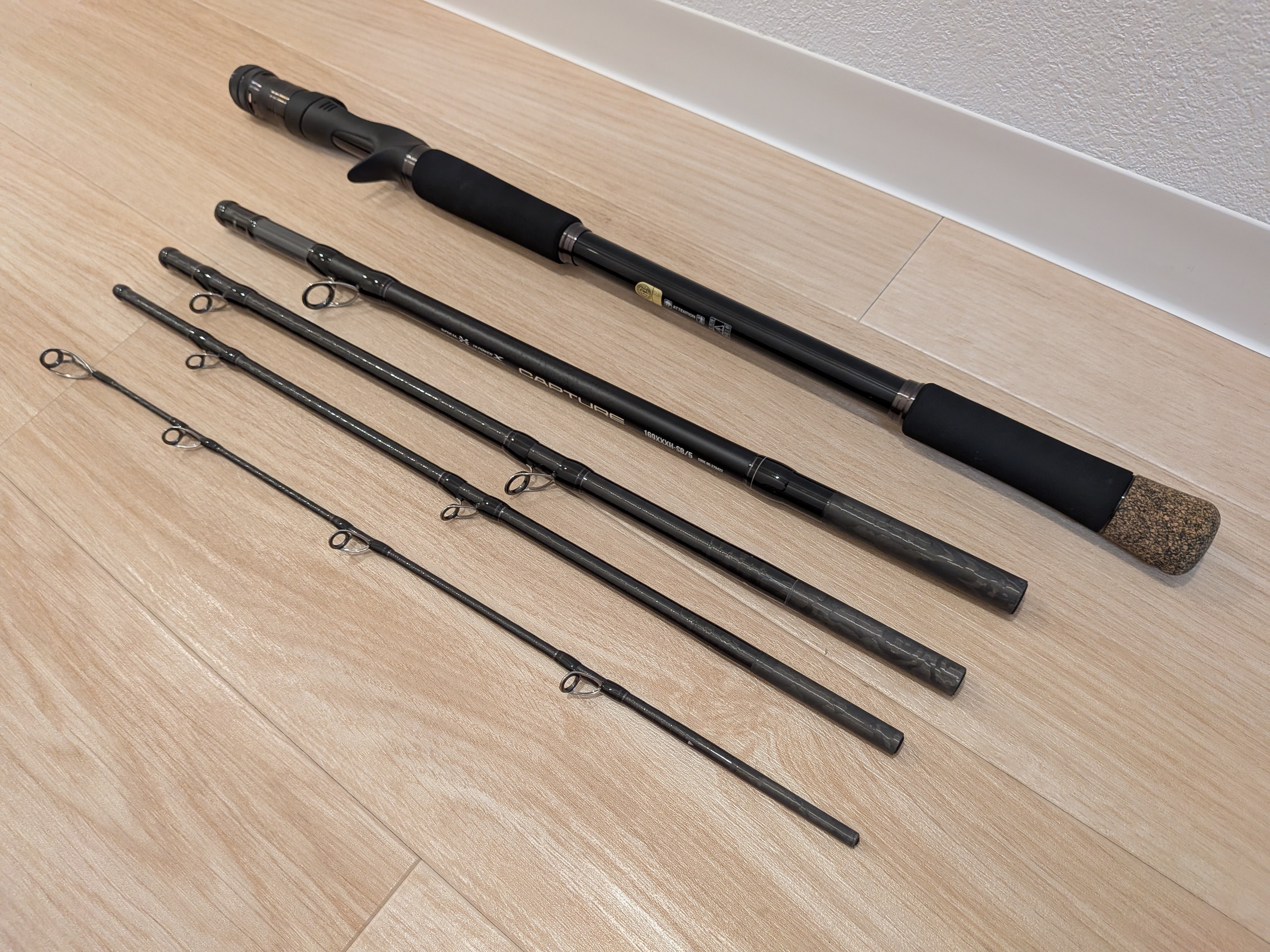 大きな自作ペンシルを投げるために買ったので、本来はもう少し曲がる竿が良いと思いますが、かっこいいし満足。